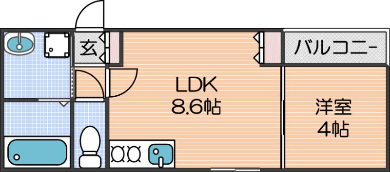 LDK 8.6畳 、洋室 4畳