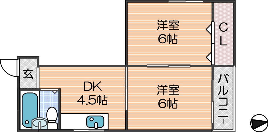 | 間取り詳細 | 洋室 6畳 、洋室 6畳 、DK 4.5畳 |