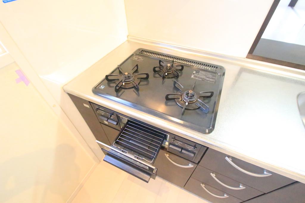 ガス(都市ガス)、インターホン(TVモニター付き)、ダブルロック、専用ゴミ置き場(あり)、駐輪場、日当り良好、角部屋、通風良好、フローリング、全居室フローリング、ベランダ・バルコニー、収納スペース、クローゼット、クローゼット数(1)、玄関収納、全居室収納、下駄箱、バス・トイレ別(別室)、シャワー、追い焚き、浴室乾燥機、オートバス、脱衣所、ウォシュレット、洗面台、洗面所独立、シャンプードレッサー、洗面所にドア、洗濯機置き場(室内)、ガスコンロ設置済、ガスコンロ口数(3)、コンロ種類(都市ガス)、グリル、システムキッチン、カウンターキッチン、24H換気システム、BS、CS、CATV、光ファイバー、CATVインターネット |
