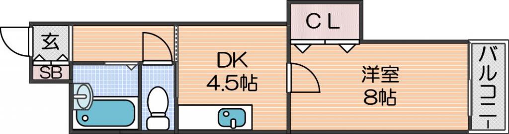 洋室 8畳 、DK 4.5畳