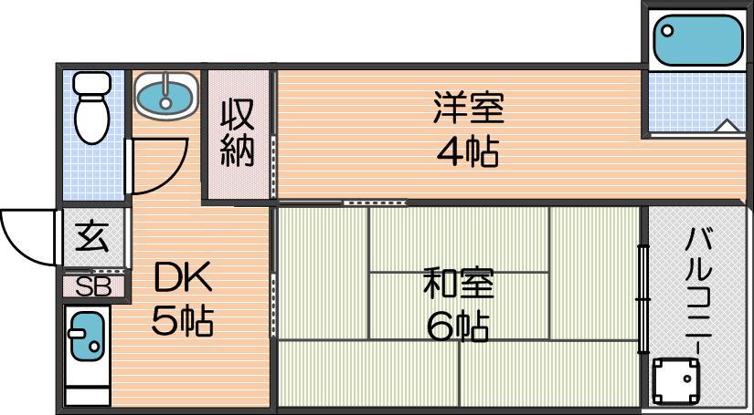| 間取り詳細 | 和室 6畳 、洋室 4畳 、DK 5畳 |