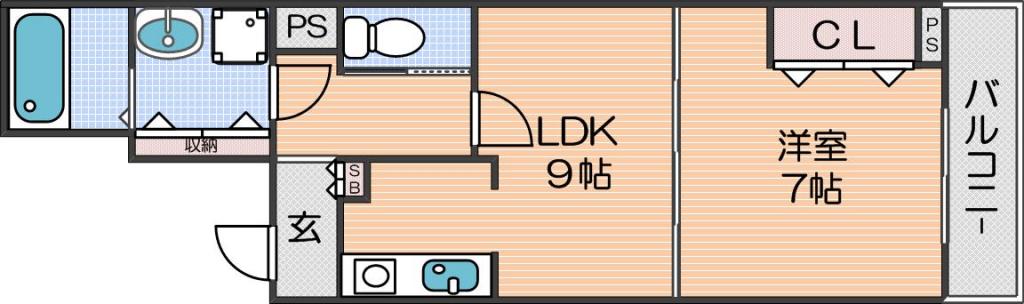 洋室 7畳 、LDK 9畳