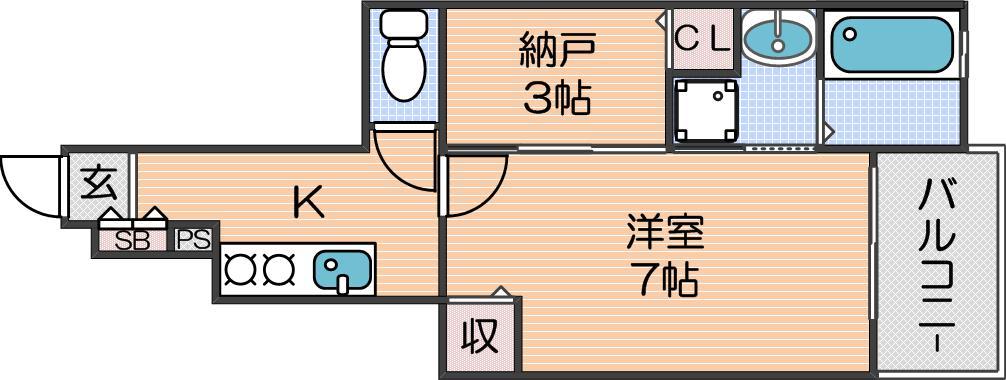 | 間取り詳細 | K 2.8畳 、洋室 7畳 、その他 3畳 |