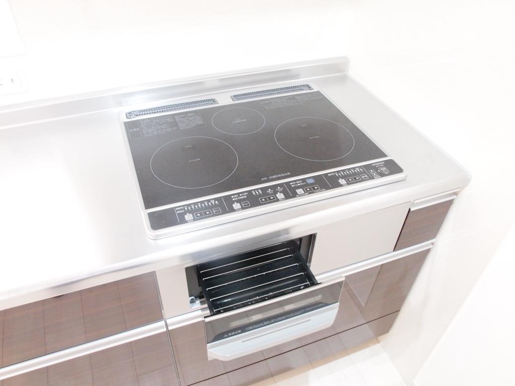 | 設備 | ガス(都市ガス)、インターホン(TVモニター付き)、防犯カメラ、ディンプルキー、ダブルロック、宅配ボックス、専用ゴミ置き場(あり)、駐輪場、日当り良好、全室向き(南向き)、南向き部屋数(2室)、南向きリビング、通風良好、フローリング、全居室フローリング、ベランダ・バルコニー、収納スペース、クローゼット、クローゼット数(1)、床下収納、玄関収納、全居室収納、トランクルーム、下駄箱、バス・トイレ別(別室)、シャワー、追い焚き、浴室乾燥機、オートバス、脱衣所、給湯、ウォシュレット、洗面台、洗面所独立、シャンプードレッサー、洗面所にドア、洗濯機置き場(室内)、ガスコンロ設置済、ガスコンロ口数(3)、コンロ種類(IH)、グリル、システムキッチン、カウンターキッチン、エアコン、エアコン台数(1)、BS、CS、CATV、光ファイバー | ||