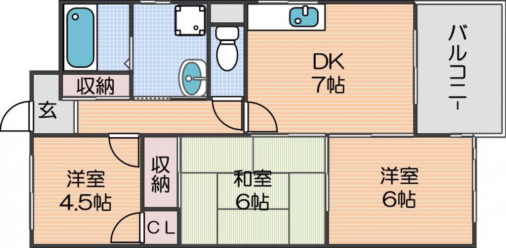 | 間取り詳細 | 洋室 6畳 、洋室 4.5畳 、和室 6畳 、DK 7畳 |
