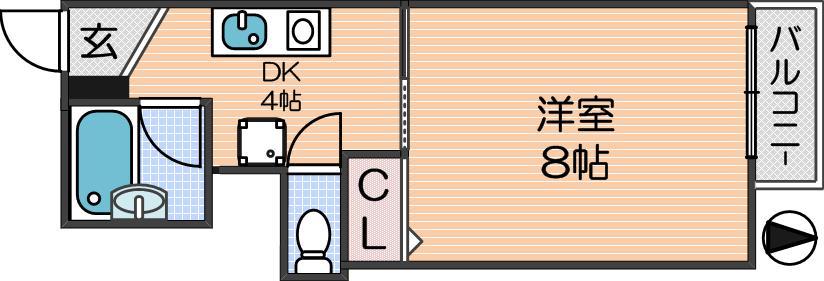 洋室 8畳 、DK 4畳