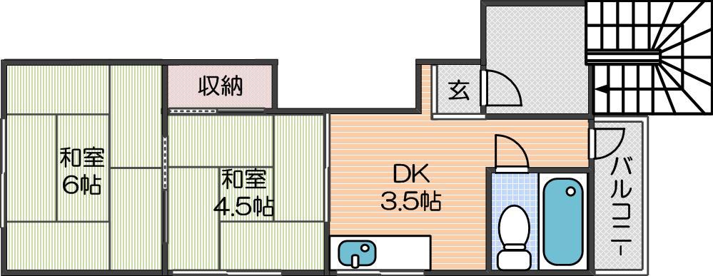 | 間取り詳細 | DK 3.5畳 、和室 4.5畳 、和室 6畳 |