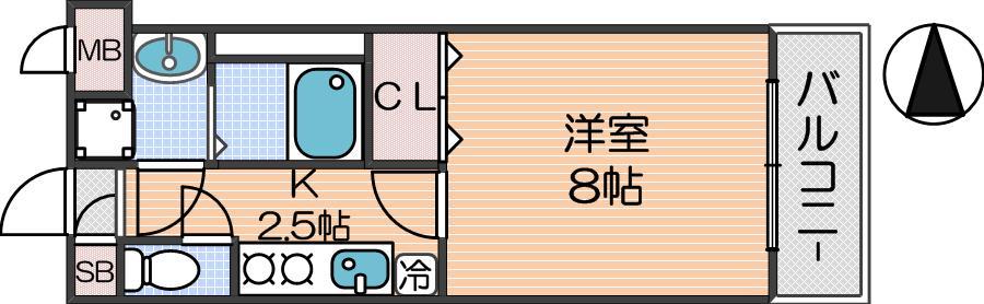 K 2.5畳 、洋室 8畳