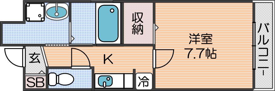 洋室 7.7畳 、K 2.5畳