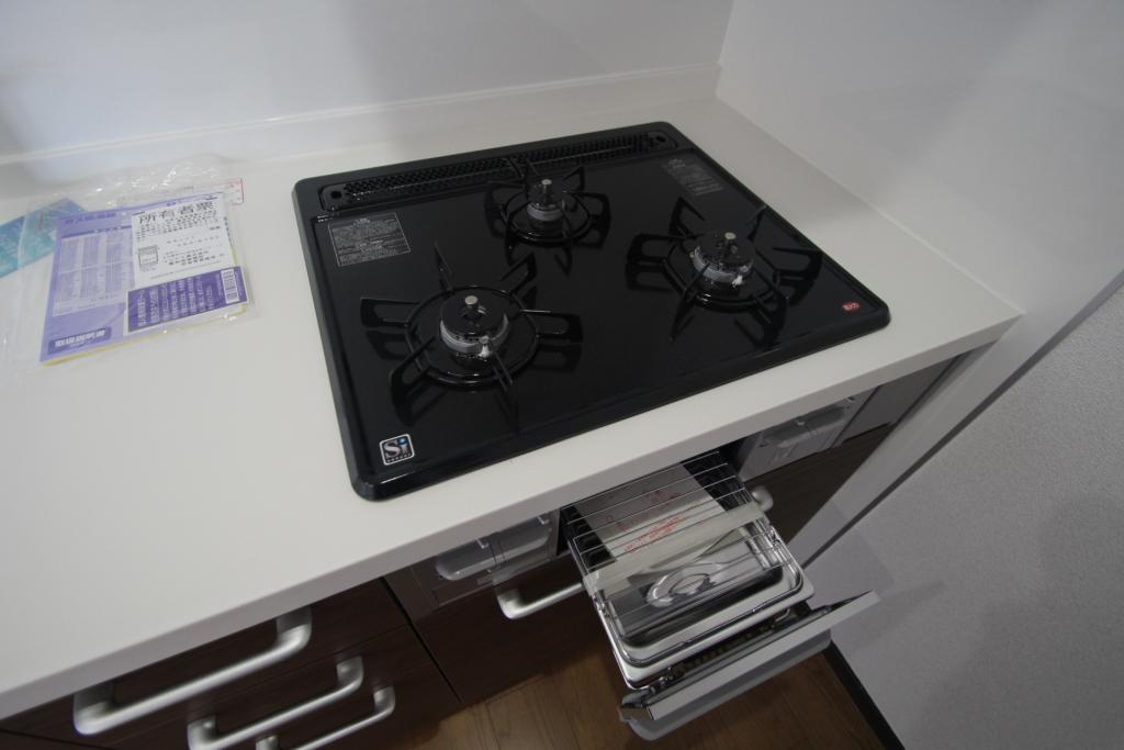 ガス(都市ガス)、インターホン(TVモニター付き)、ディンプルキー、駐輪場、日当り良好、南向きリビング、角部屋、通風良好、フローリング、全居室フローリング、照明器具、ベランダ・バルコニー、収納スペース、クローゼット、クローゼット数(1)、バス・トイレ別(別室)、シャワー、脱衣所、ウォシュレット、洗面台、洗面所独立、シャンプードレッサー、洗面所にドア、洗濯機置き場(室内)、ガスコンロ設置済、ガスコンロ口数(3)、コンロ種類(都市ガス)、グリル、システムキッチン |