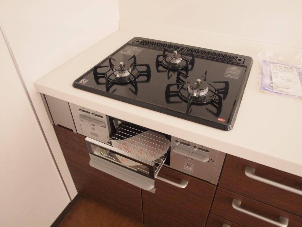 | 設備 | ガス(都市ガス)、インターホン(TVモニター付き)、駐輪場、日当り良好、南向きリビング、通風良好、フローリング、全居室フローリング、照明器具、ベランダ・バルコニー、収納スペース、クローゼット、クローゼット数(1)、バス・トイレ別(別室)、シャワー、脱衣所、ウォシュレット、洗面台、洗面所独立、シャンプードレッサー、洗面所にドア、洗濯機置き場(室内)、ガスコンロ設置済、ガスコンロ口数(3)、コンロ種類(都市ガス)、グリル、システムキッチン | ||