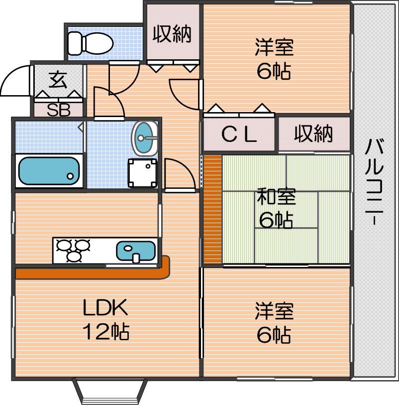 | 間取り詳細 | LDK 12畳 、洋室 6畳 、洋室 6畳 、和室 6畳 |