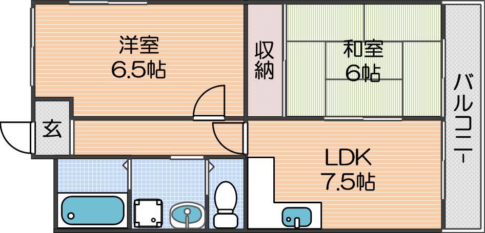 | 間取り詳細 | LDK 7.5畳 、洋室 6.5畳 、和室 6畳 |