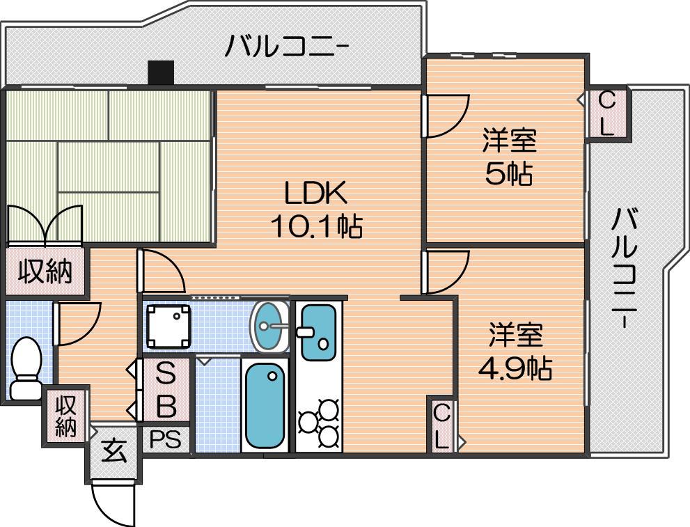| 間取り詳細 | LDK 10.1畳 、和室 6畳 、洋室 5畳 、洋室 4.9畳 |