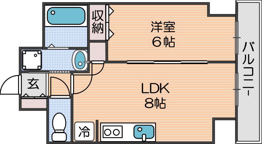 洋室 6畳 、LDK 8畳