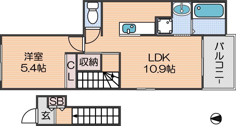 LDK 10.9畳 、洋室 5.4畳