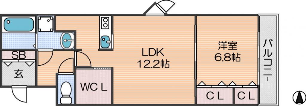 LDK 12.2畳 、洋室 6.8畳
