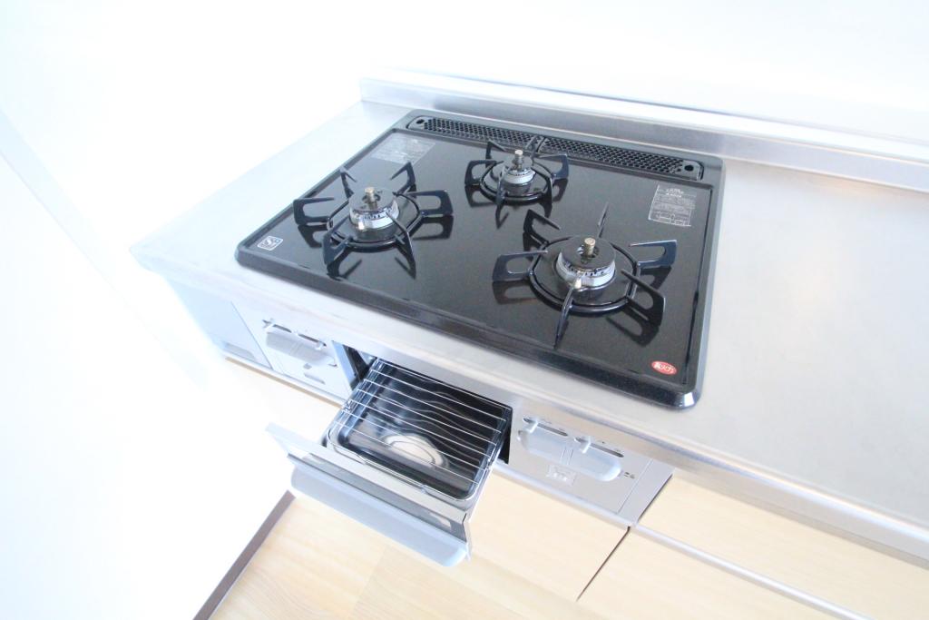 | 設備 | ガス(都市ガス)、インターホン(TVモニター付き)、防犯カメラ、カードキー、専用ゴミ置き場(あり)、駐輪場、日当り良好、前面棟無、眺望良好、通風良好、フローリング、玄関ホール、ベランダ・バルコニー、2Wayバルコニー、収納スペース、クローゼット、クローゼット数(2)、玄関収納、全居室収納、下駄箱、バス・トイレ別(別室)、シャワー、脱衣所、給湯、ウォシュレット、洗面台、洗面所独立、シャンプードレッサー、洗面所にドア、洗濯機置き場(室内)、ガスコンロ設置済、ガスコンロ口数(3)、コンロ種類(都市ガス)、グリル、システムキッチン、LAN | ||
