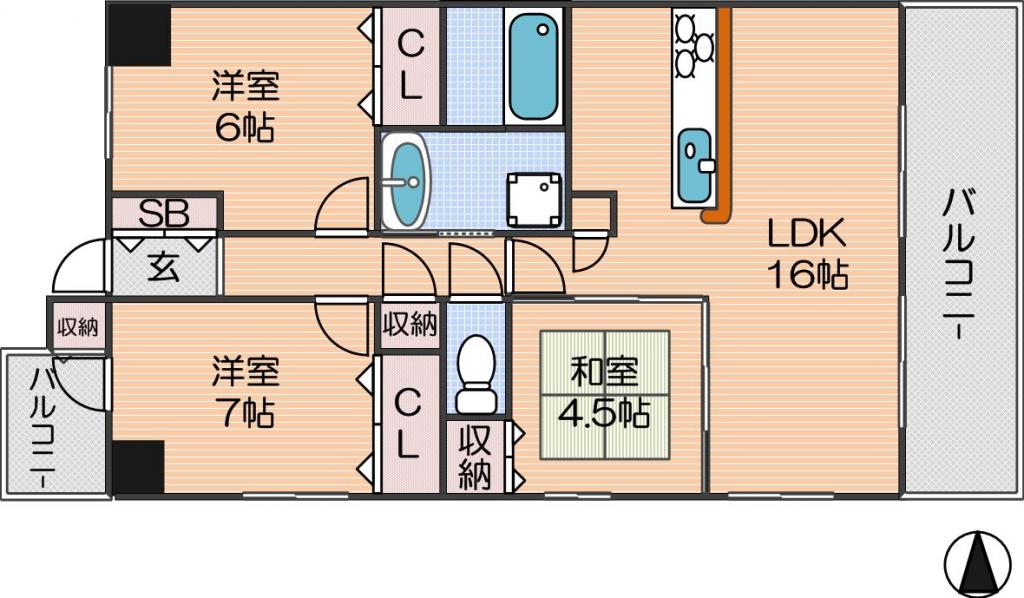 | 間取り詳細 | LDK 16畳 、和室 4.5畳 、洋室 6畳 、洋室 7畳 |