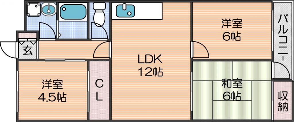 | 間取り詳細 | LDK 12畳 、和室 6畳 、洋室 6畳 、洋室 4.5畳 |