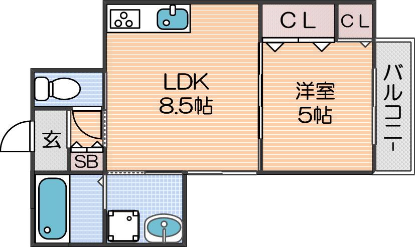 LDK 8.5畳 、洋室 5畳