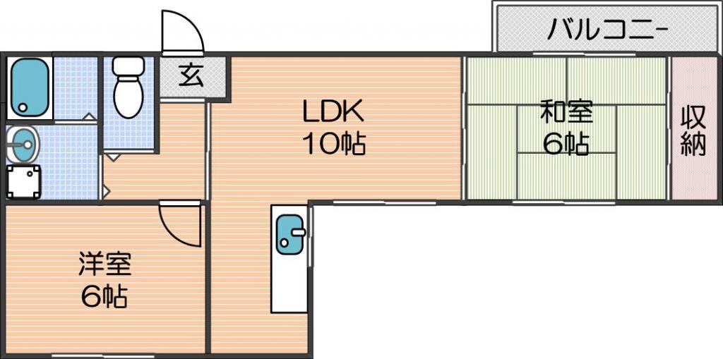 | 間取り詳細 | LDK 10畳 、洋室 6畳 、和室 6畳 |