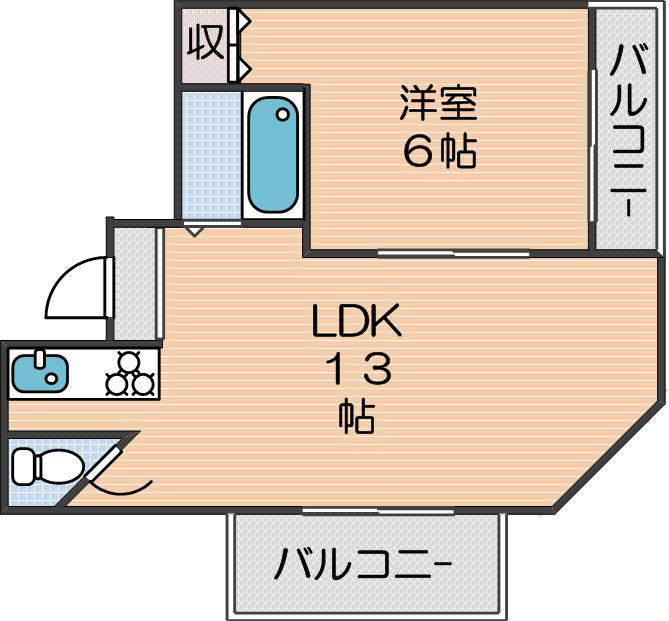 LDK 13畳 、洋室 6畳