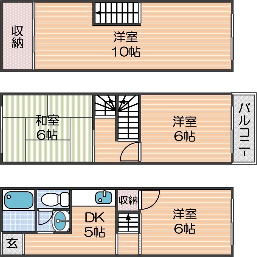 | 間取り詳細 | DK 5畳 、洋室 6畳 、洋室 6畳 、和室 6畳 、洋室 10畳 |