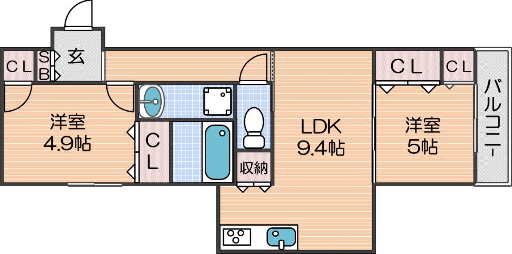 | 間取り詳細 | LDK 9.4畳 、洋室 4.9畳 、洋室 5畳 |